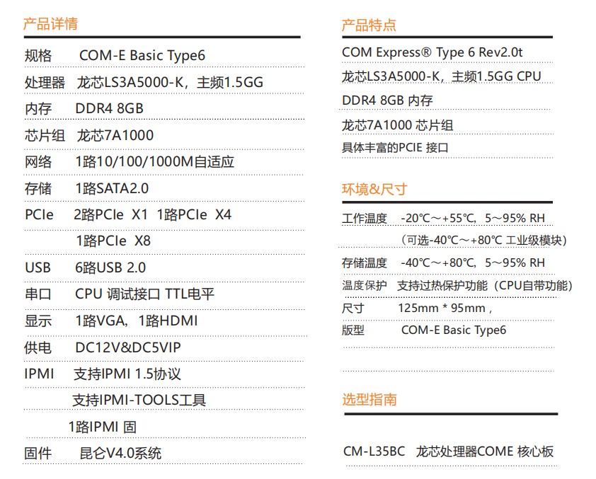 板采用龍芯3A5000CPU搭配龍芯7A1000橋設計COM- E Basic Type6版 型 DDR4 8GB 內存支持VGAHDMI雙屏顯示輸出,是一款 國產自主可控集高性能,低功耗高可靠性于一體的高集成度COME核心板,可廣泛應用于能源等領域。